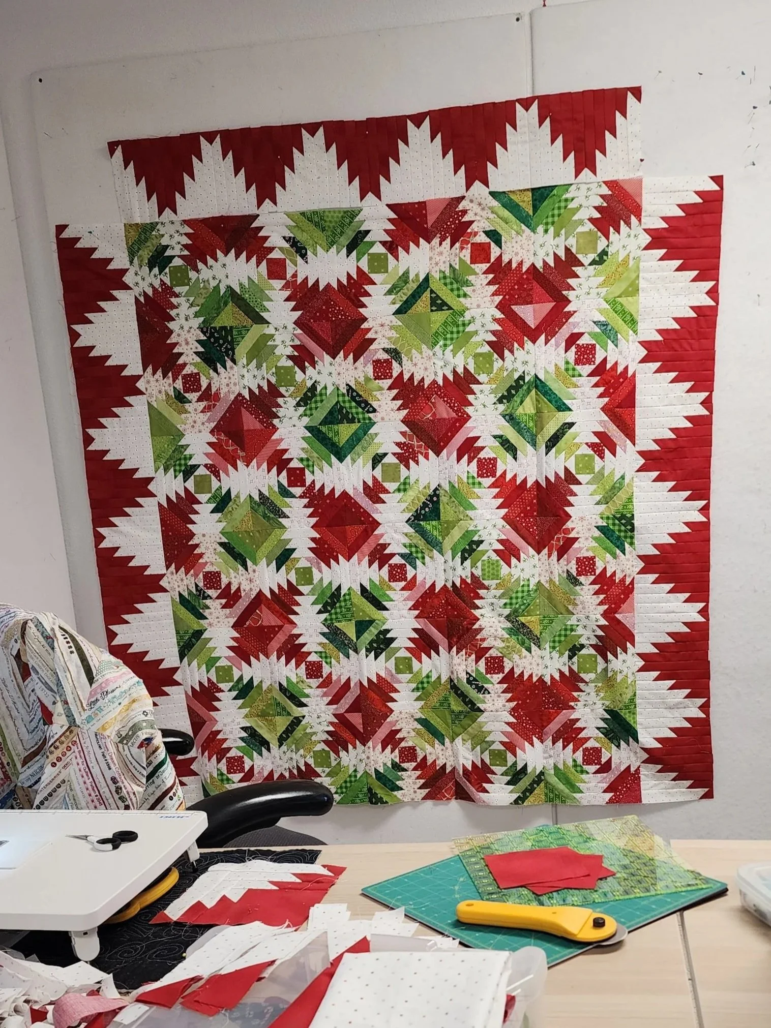 - Sewing area has many design walls, ironing and cutting stations.